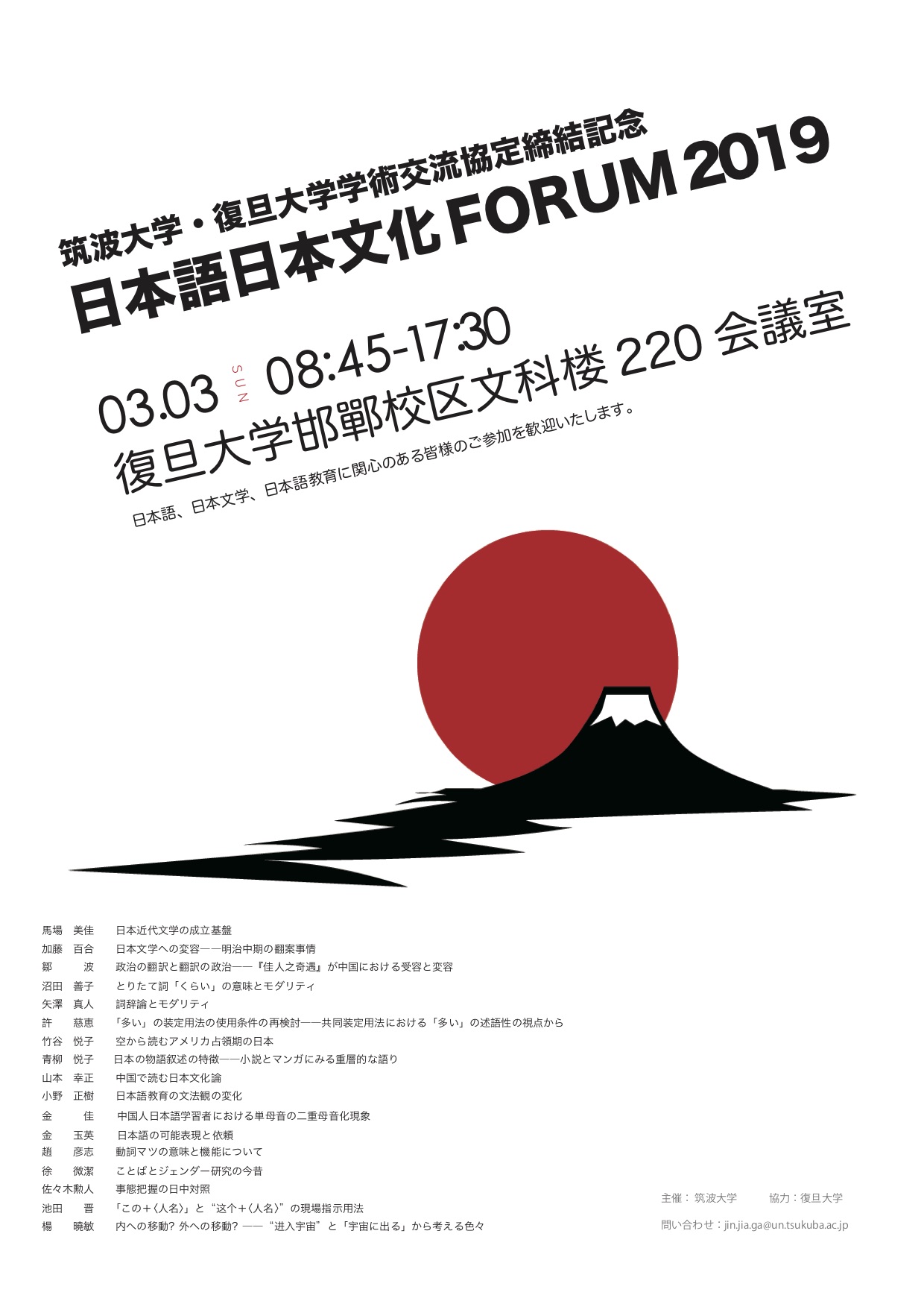 日本語日本文化フォーラム 2019(筑波大学・復旦大学学術交流協定締結記念イベント)の開催について